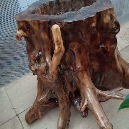 高23公分,直徑29公分。木藝花盆,水培土培都行
